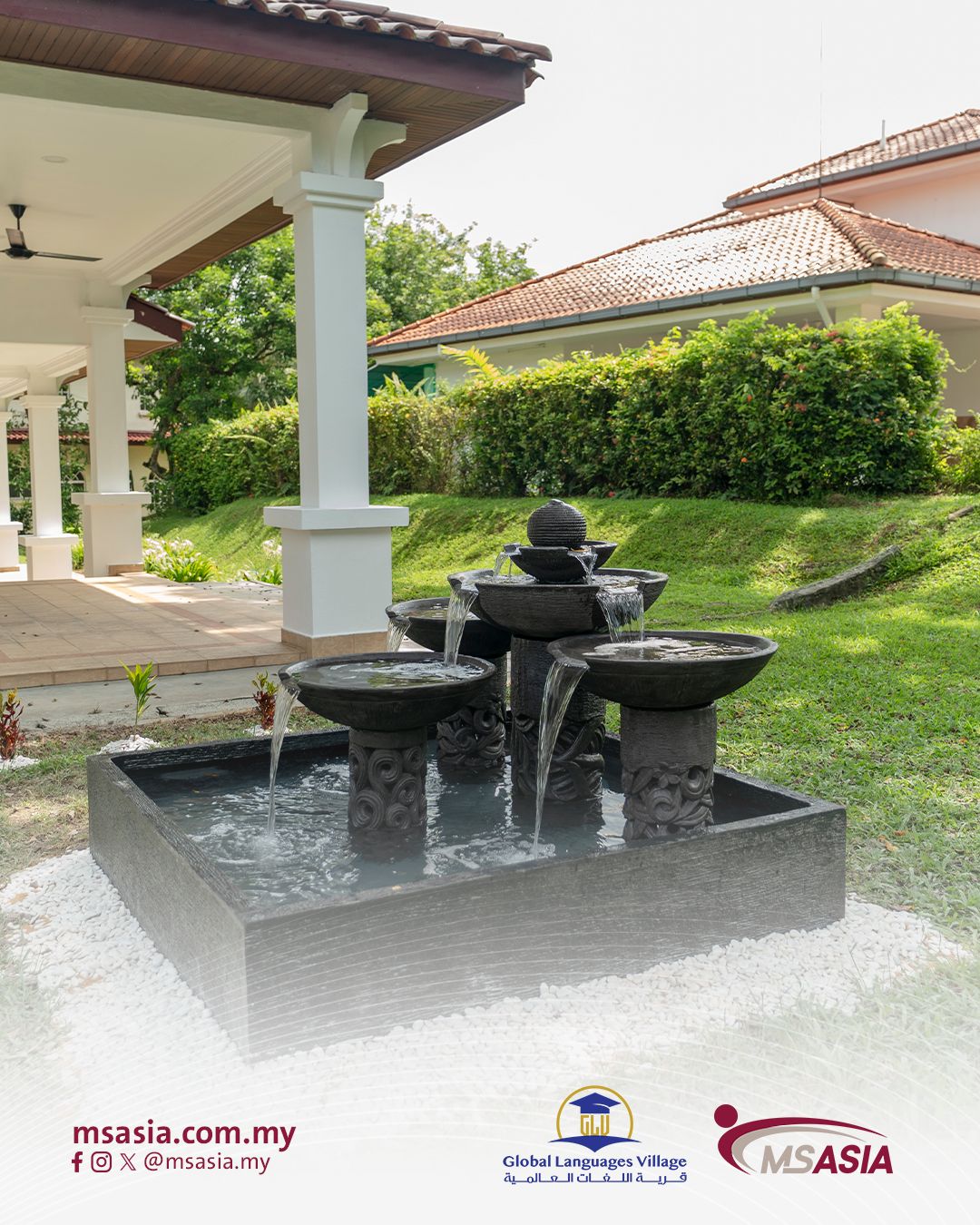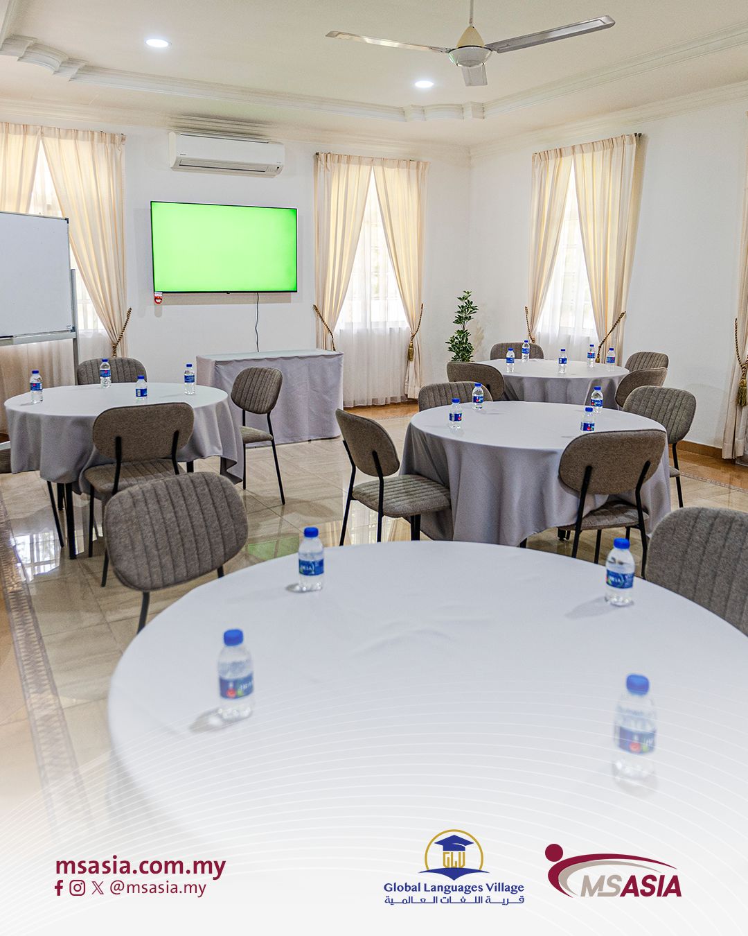 The facility offers premium guest rooms for up to 40 participants, a VIP lounge, state-of-the-art classrooms, a modern dining hall, landscaped gardens with fountains and seating areas, a private swimming pool, and a fully equipped fitness corner.